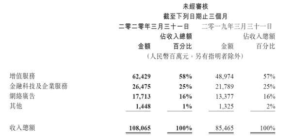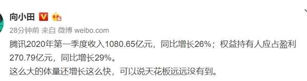 1、騰訊2020年Q1騰訊營收1080.65億 同比增長26%