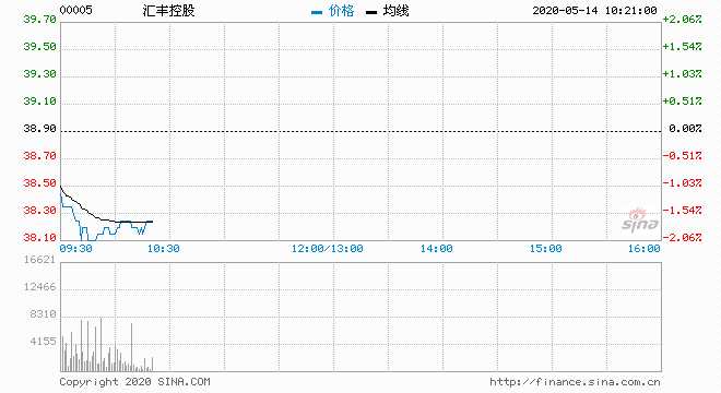 匯豐控股(00005) 38.50元 跌1.03%