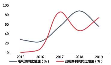 需要注意的是,公司毛利潤(rùn)和歸母凈利潤(rùn)近幾年雖然均錄得增長(zhǎng),但兩者的同比增速波動(dòng)較大。2015年—2017年,該公司歸母凈利潤(rùn)同比增速由0.34%大幅增至86.15%,后于2018年回落至46.89%;毛利潤(rùn)同比增速亦由28%大幅增至2018年的88.48%,并于2019年回落至55.92%。
