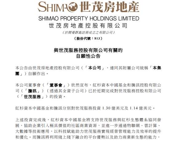 5月14日消息,世茂房地產發(fā)布公告,世茂服務獲得紅杉資本和騰訊入股,分別投資1.3億美元和1.14億美元。