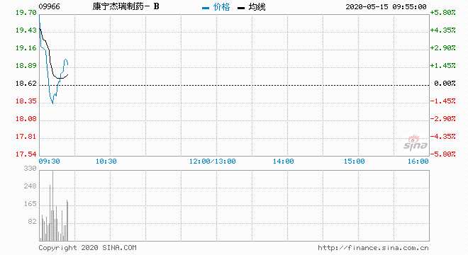 康寧杰瑞制藥現(xiàn)價升5.69%,報19.68元,盤中高見19.94元;成交約4萬股,涉資71萬元。