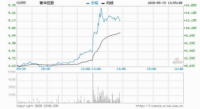 敏華(01999)午間公布首季業(yè)績,現(xiàn)暫升11.28%,報5.13元,盤中最高見5.27元創(chuàng)逾兩個月高;成交約385萬股,涉資1869萬元,主動買盤73%。