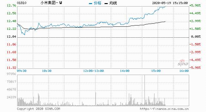 小米集團抽升近4% 獲瑞信升至跑贏大市評級