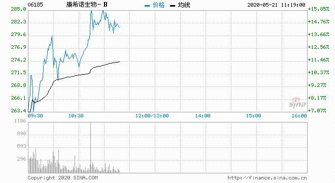 摘要: 康希諾(06185)升15.69%,報284.6元,最高價為285元,創(chuàng)上市新高,最低價為255元,主動買盤56%;成交159.37萬股,涉資4.34億元.以現(xiàn)價計,該股暫連升11日,