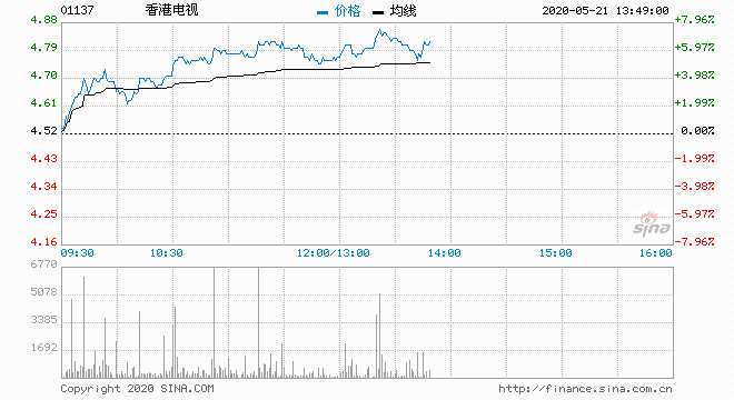 香港電視升近7%突破10天及50天線 主動買盤68%