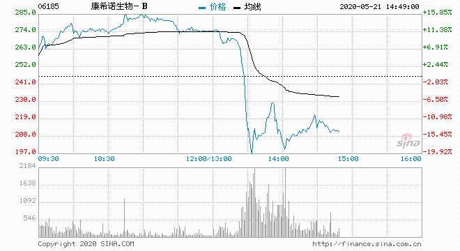 生科股午后集體倒跌 康希諾下跌10%康方生物下跌5%
