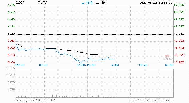 周大福?。?1929) 5.71元 跌7.90%