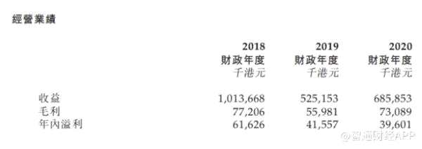 在2018財(cái)政年度、2019財(cái)政年度及2020財(cái)政年度,毛利分別約為7720萬港元、5600萬港元及7310萬港元,即相應(yīng)年度的毛利率分別約為7.6%、10.7%及10.7%。