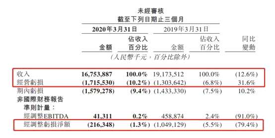 具體到數(shù)據(jù)方面,美團(tuán)2020年第一季度營業(yè)收入由去年同期的191.74億元減少至167.54億元,同比下降12.6%。經(jīng)營虧損由13.04億元擴(kuò)大至17.16億元,經(jīng)營利潤率由負(fù)6.8%減至負(fù)10.2%。經(jīng)調(diào)整虧損凈額為2.16億元,較上年同期的經(jīng)調(diào)整凈虧損10.49億元收窄了79.4%。