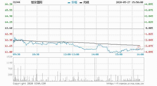 內(nèi)需股隨市向下 恒安國際跌近4%跌穿50天線