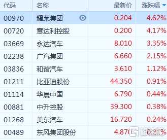5月28日,港股汽車股走強,顯出普漲之勢,其中,意達利控股、耀萊集團漲超4%,永達汽車漲超3%,廣汽集團漲超2%,華晨中國、比亞迪股份、和諧汽車等有所拉升。