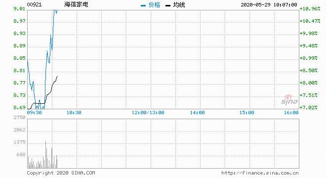 中金:海信家電目標(biāo)價升28.2%至10.6港元
