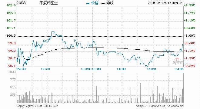 平安好醫(yī)生(01833) 98.10元 跌2.39%