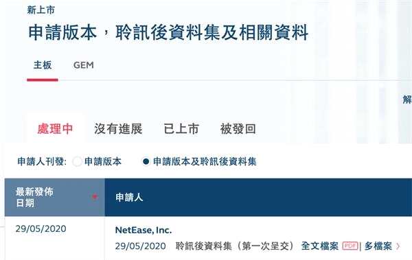 網(wǎng)易歸來!港交所公布網(wǎng)易聆訊文件 6月初或啟動招股!