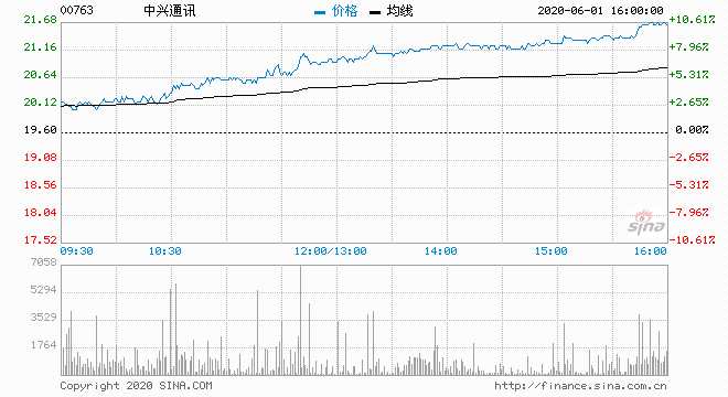 中興通訊升逾10% 報(bào)21.6港元