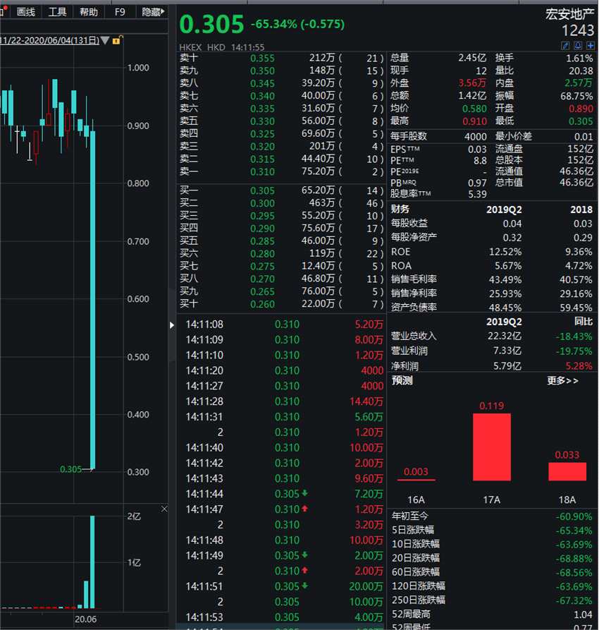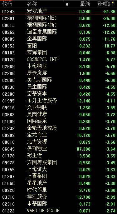 港股又現(xiàn)洗倉:宏安地產(chǎn)午后暴跌65%