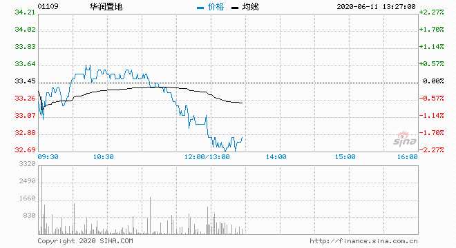 中泰國(guó)際:華潤(rùn)置地5月合同銷售按年跌0.4%至212億元