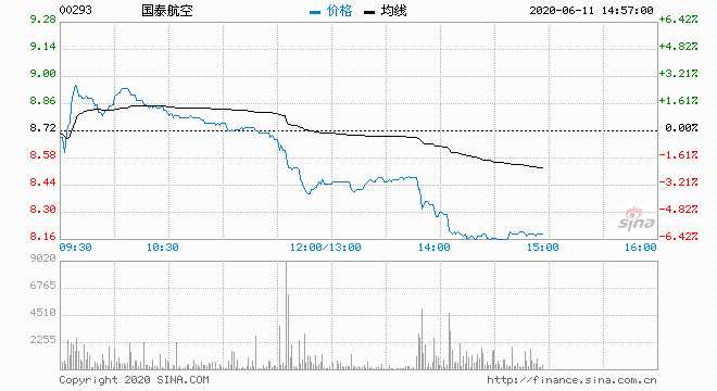 6月11日消息,航空股全線走低,國泰航空跌6.08%;中國東方航空跌4.89%;中國南方航空跌4.74%;中國國航跌3.02%;美蘭空港跌2.99%;北京首都機場跌1.78%。