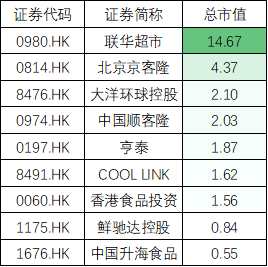 據(jù)新浪港股統(tǒng)計,目前設(shè)計水產(chǎn)及冷凍鏈企業(yè)的上市公司至少有:聯(lián)想控股企業(yè)的佳沃集團(tuán)、美團(tuán)旗下美團(tuán)外賣、阿里巴巴旗下的餓了么與盒馬生鮮、COOL LINK、聯(lián)華超市、、中國升海食品、香港食品投資、鮮馳達(dá)控股、北京京客隆、亨泰、大洋環(huán)球控股。