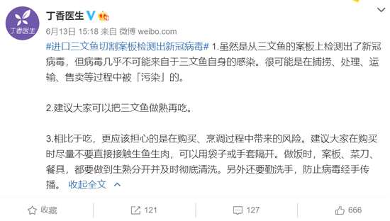 丁香醫(yī)生表示,建議大家可以把三文魚做熟再吃。建議大家在購買時盡量不要直接接觸生魚生肉,可以用袋子或手套隔開。做飯時,案板、菜刀、餐具,都要做到生熟分開并及時徹底清洗。另外還要勤洗手,防止病毒經(jīng)手傳播。