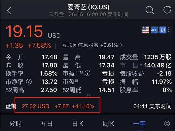 受消息影響,愛(ài)奇藝股價(jià)盤前漲超41%!