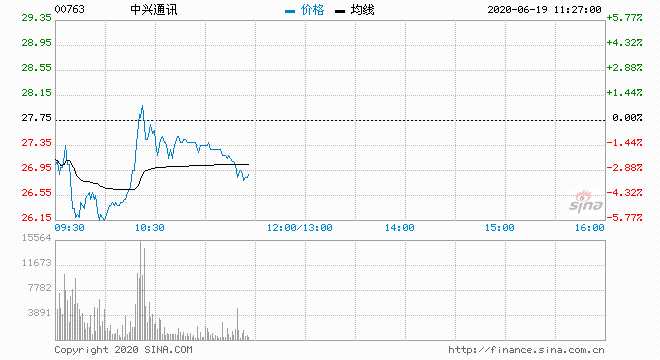 中興通訊股價曾拗腰倒升1% 現(xiàn)跌近2%