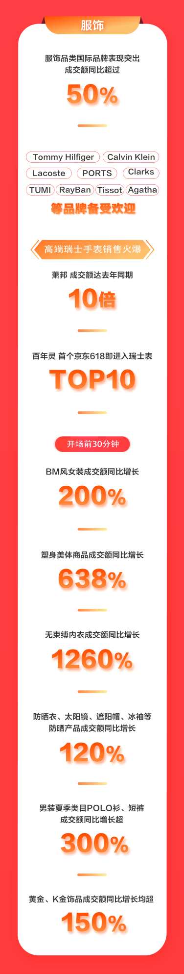 這一趨勢(shì)同樣反應(yīng)在服飾品類,618當(dāng)天國(guó)際品牌表現(xiàn)尤為突出,同比增長(zhǎng)超過(guò)50%,主要包括Tommy、CK、Lacoste、PORTS、Clarks、TUMI、雷朋、天梭、美度、漢米爾頓和雷達(dá)等品牌。