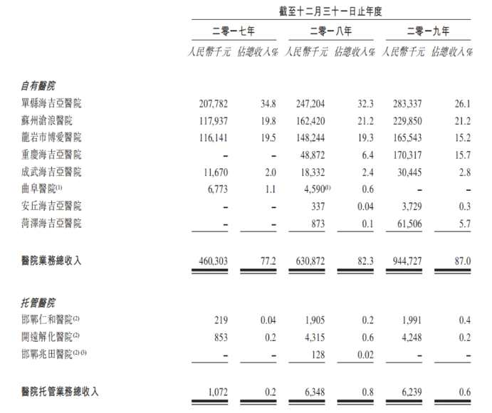 集團各旗下醫(yī)院對收入貢獻(來源:招股書)