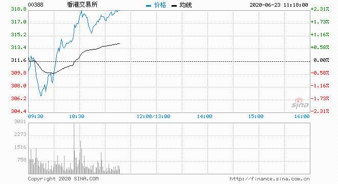 摘要: 6月23日消息,香港交易所股價漲1.6%,報316.6港元,市值突破4000億港元。大摩發(fā)研報,將港交所(00388)目標價由325港元提升至345港元,重申“增持”評級。