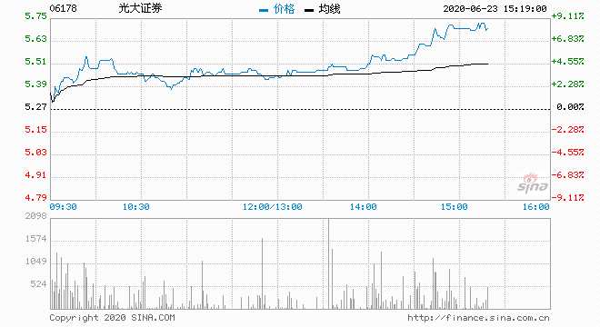 6月23日消息,中資券商股上漲。光大證券(601788,股吧)漲8.16%;中信建投漲4.66%;中國銀河(601881,股吧)整2.14%;華泰證券(601688,股吧)漲1.07%。