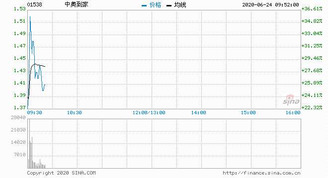 6月24日消息,中奧到家大漲33.04%,報1.49港元,市值達12億港元。