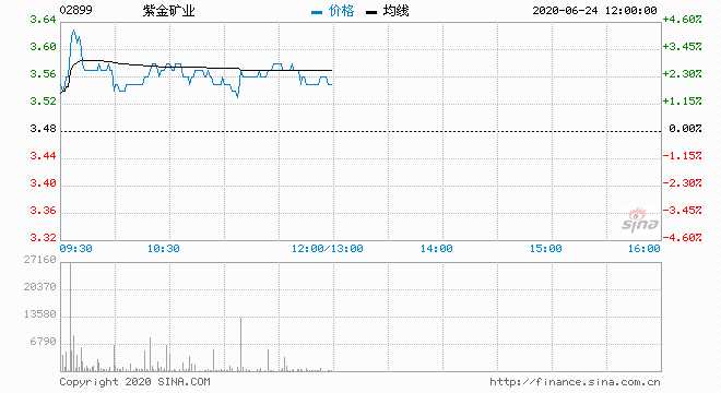 紫金礦業(yè)(02899) 3.560元 升2.30%