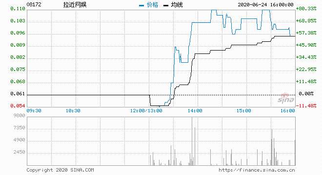 拉近網(wǎng)娛(08172) 0.099元 升62.295%