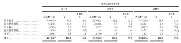 作為綜合物業(yè)提供商,主營(yíng)開發(fā)住宅物業(yè)外,大唐地產(chǎn)亦開發(fā)商業(yè)物業(yè),包括辦公樓宇、酒店、購(gòu)物中心及其他。具體來看,2019年,大唐地產(chǎn)銷售物業(yè)、提供建筑、租金收入、提供酒店服務(wù)及其他業(yè)務(wù)分別占比95.9%、2.7%、0.5%、0.4%和0.5%;毛利率分別為27.4%、5.0%、99.1%、0.6%、7.7%。