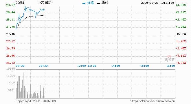 中芯國(guó)際(00981) 28.70元 升4.55%