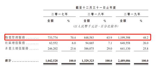 其中,該公司物業(yè)服務(wù)收入占比大幅減少,從2017年的70.4%減少為目前的48.2%,但社區(qū)增值服務(wù)從6%增加至26%。