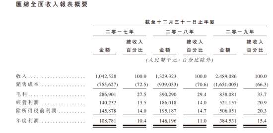 公司2017-2019年收入分別為10.425億元、13.29億元、24.89億元,復(fù)合年增長率為54.5%。利潤分別錄得1.09億萬元、1.46億元、3.85億元,復(fù)合年增長率為88.0%。