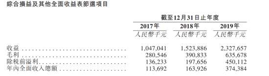 根據(jù)招股書(shū),金科智慧服務(wù)2017年和2019年的收入分別為10.47元,23.28億元,復(fù)合年增長(zhǎng)率約為49.1%。凈利潤(rùn)由2017年的1.14億元大幅增至2019年的3.74億元,復(fù)合年增長(zhǎng)率約為 81.5%。