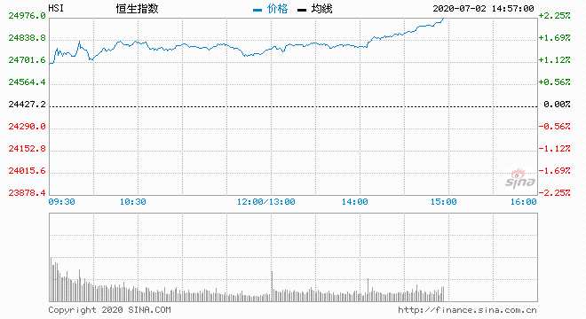 港股恒指大漲2%逼近25000點(diǎn) 國(guó)企指數(shù)漲2.4%逼近10000點(diǎn)