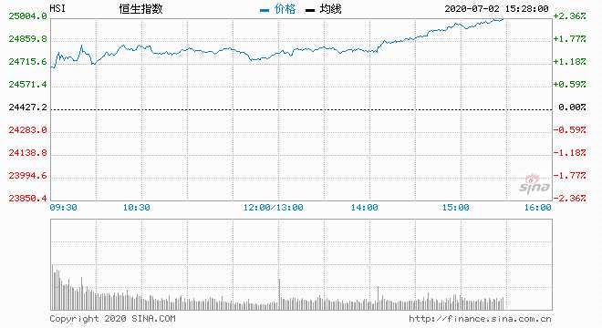 港股恒指升破25000點(diǎn)大關(guān) 國企指數(shù)升破10000點(diǎn)大關(guān)