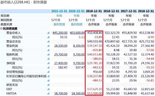 直到2019年,積壓的所有隱患終于讓都市麗人業(yè)績(jī)爆雷,當(dāng)期營(yíng)收規(guī)模降至40.82億元,凈利潤(rùn)則虧損近12.98億元。