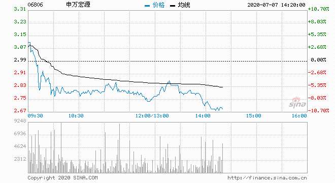 申萬(wàn)宏源跌逾10% 報(bào)2.69港元