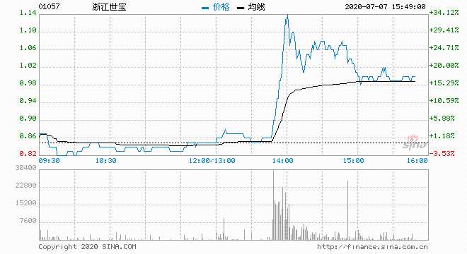 浙江世寶(01057) 1.000元 升17.647% ∥