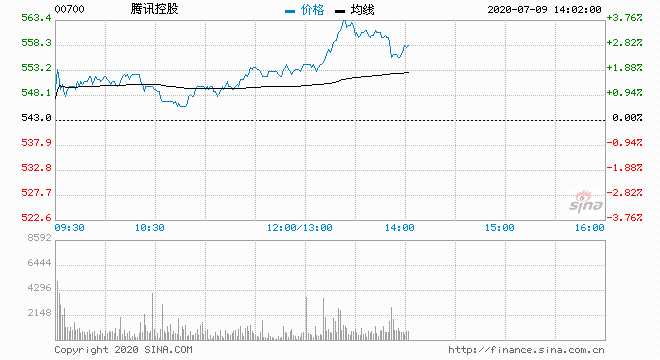 騰訊(00700)升3.04%,報(bào)559.5元,最高價(jià)為559.5元,創(chuàng)上市新高,最低價(jià)為544元,主動(dòng)買盤64%;成交1549.69萬(wàn)股,涉資85.31億元.以現(xiàn)價(jià)計(jì),該股暫連升2日,累計(jì)升幅8.43%。