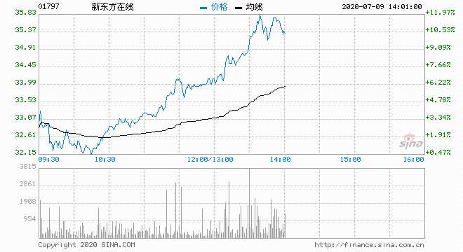 新東方在線上升10% 報35.2港元