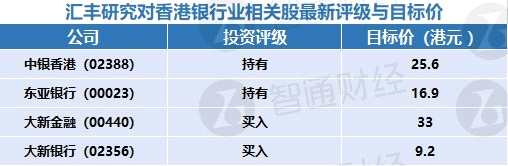 二、匯豐研究對(duì)香港銀行業(yè)相關(guān)股最新評(píng)級(jí)與目標(biāo)價(jià)