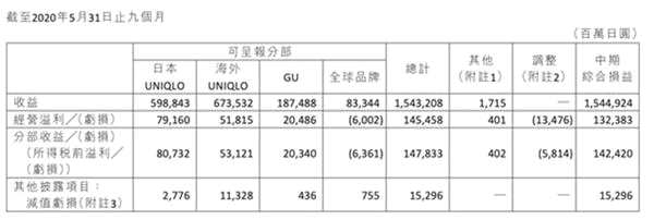 公司公告稱,收益及凈利下降主要受到新冠肺炎疫情等因素影響,迅銷集團旗下品牌門店臨時停業(yè)或縮短營業(yè)時間,致使集團各事業(yè)分部業(yè)績下降;因業(yè)績不振,虧損門店的物業(yè)、廠房、設(shè)備及使用權(quán)資產(chǎn)錄得152億日元減值虧損。