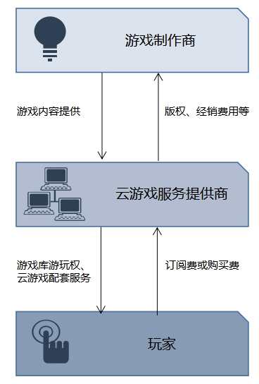 云游戲的主體產(chǎn)業(yè)鏈中,共有三個(gè)組成部分: