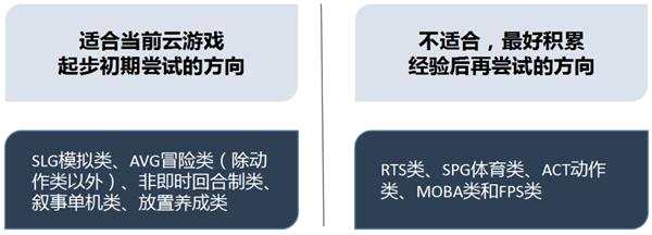 ▼ 不同類型的游戲的云游戲化難度不一樣