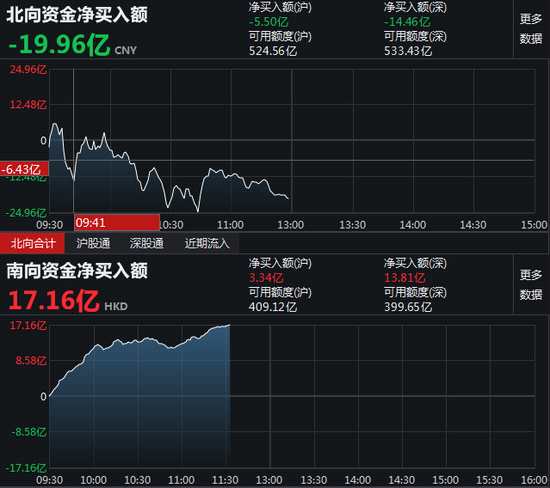 午評(píng):北向資金凈流出19.96億元 滬股通凈流出5.5億元
